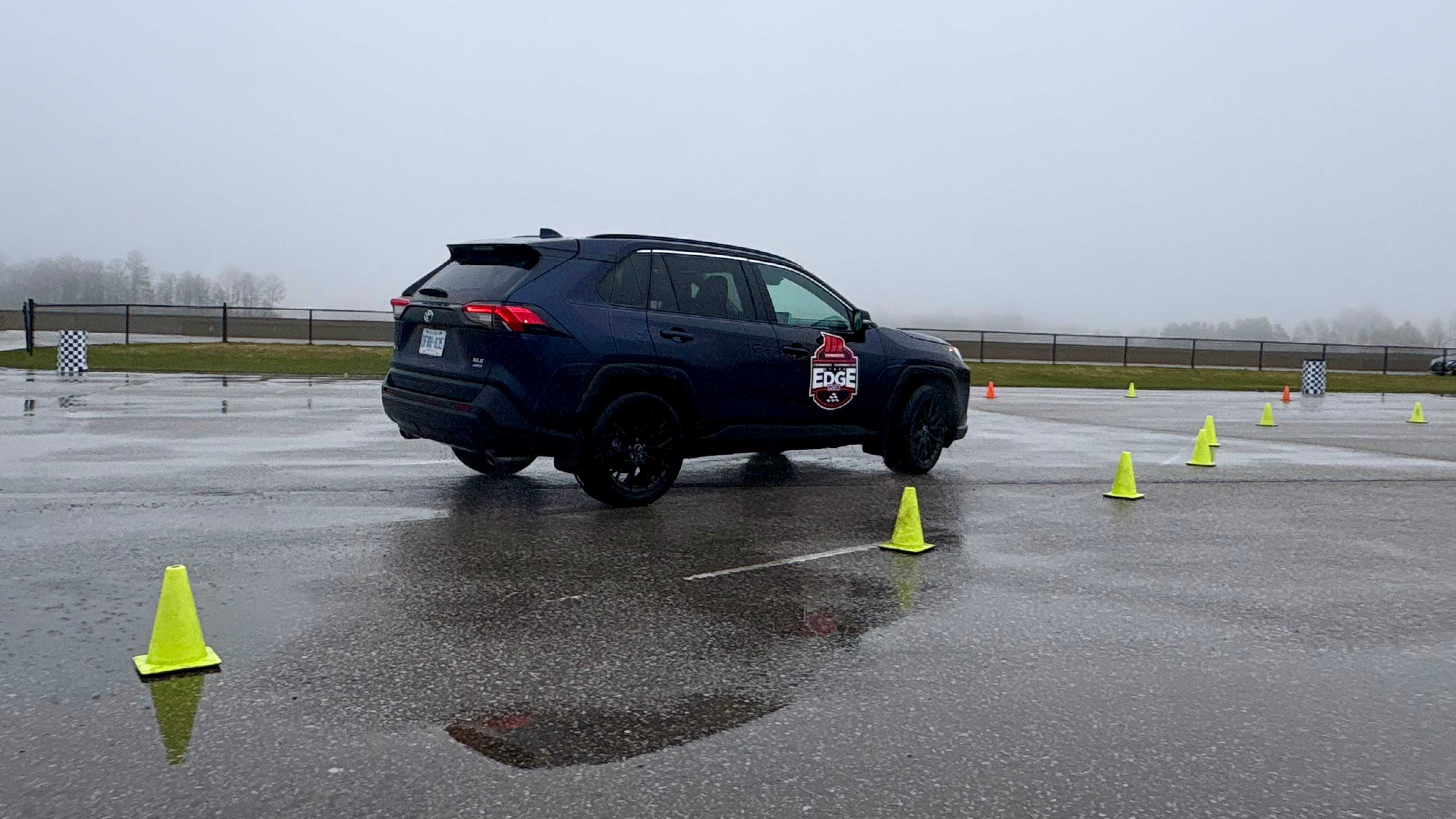 We tested the Hydra Edge Plus on several Toyota RAV4s on public roads and a closed course. The public roads were two-lane country variety mostly, with some brief highway in the mix. The close course was an autocross setup that tested wet braking, wet grip, and wet handling. All test sessions were conducted in wet conditions. Road driving occurred in heavy rain.