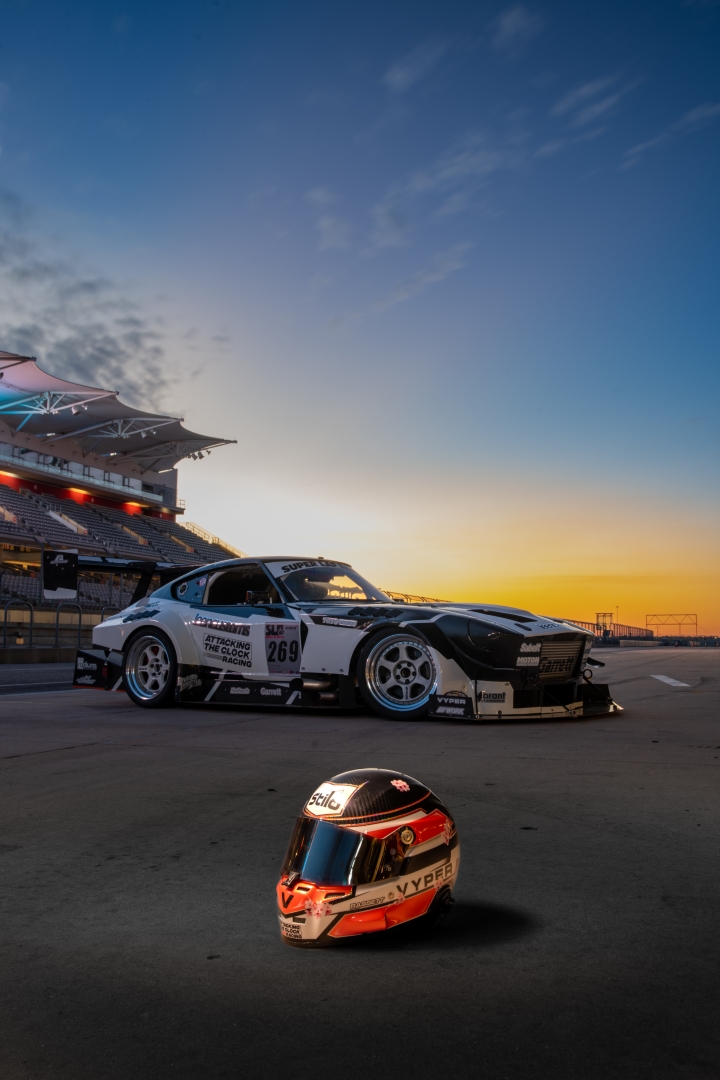If you saw the car at the 2018 SEMA Show, you might remember a sharp-looking Z that hinted at purpose. That exposed carbon fiber version feels like a draft compared to what sits on track today. The evolution since then is the product of countless revisions, tear-down winters, and a growing skillset through Bassett’s shop, Attacking the Clock Racing. The name seems especially apropos here, because time was both the opponent and the motivator.