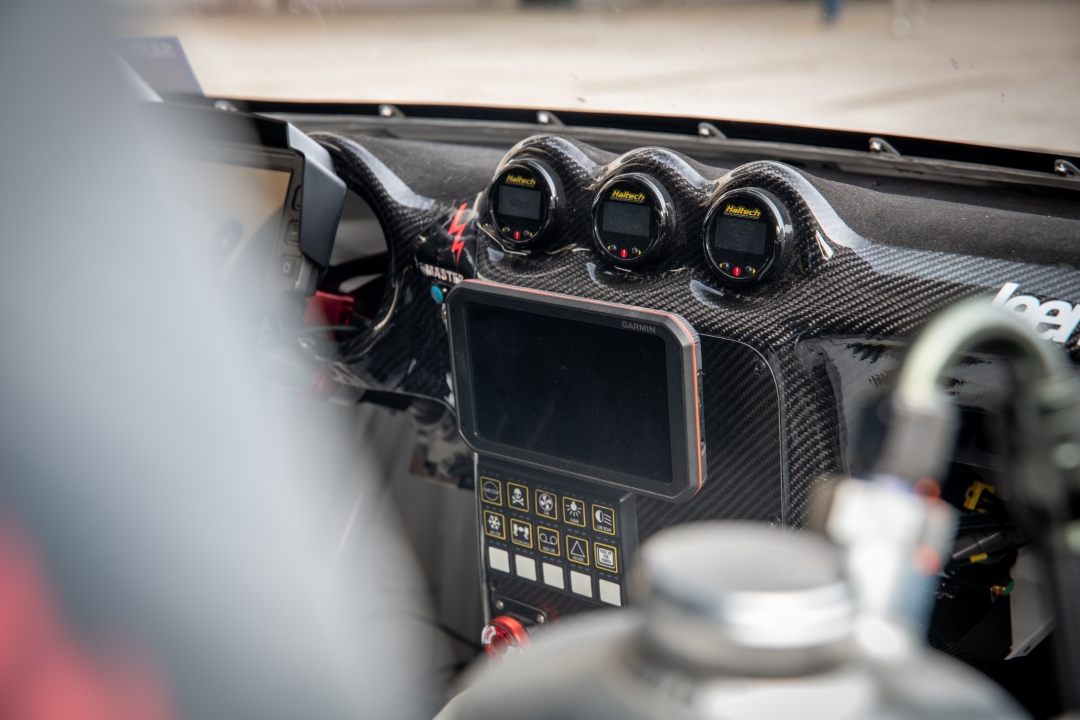 Safety is handled with Sabelt gear, a custom aluminum rear firewall, and a Lifeline fire suppression system. An OBP pedal box and ATC button box keep ergonomics in focus. Even battery placement has careful thought behind it, utilizing an Antigravity ATX-30RS housed in a rally-spec enclosure from Mele Design Firm.