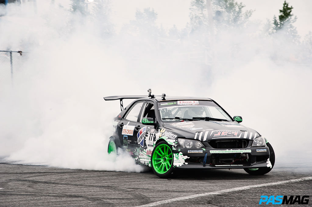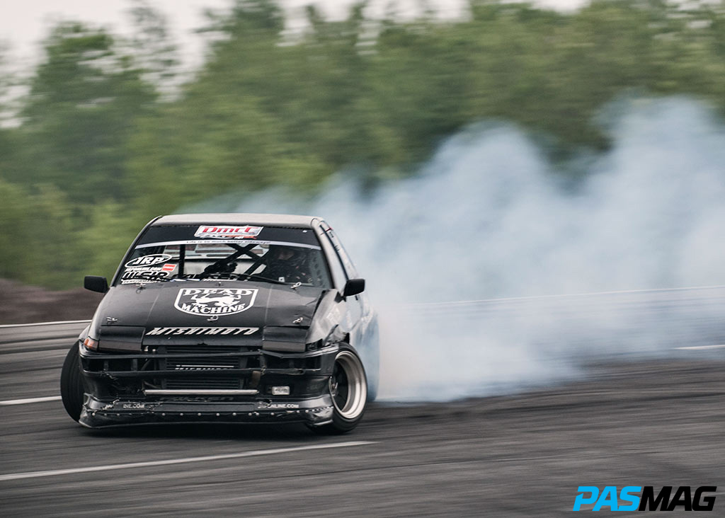Coming into day one the skies were dark and cloudy but no rain! Walking around the paddock area it is always fun to see the new cars and the new drivers. Maxim Lemoine was now in the Pro ranks with his S10 drift truck rocking a new livery and more power. Pat Cyr was set to be driving a FRS for this season but due to a lack of time the car was not ready in time for this round so he showed up with his trusty AE86 to give it one last battle before taking a much needed rest. Pat did tell me that the FRS will be ready for RD2. Another Rookie that stepped up from Pro Am is Seb Grandmaison who I think it rocking the coolest graphics in DMCC.