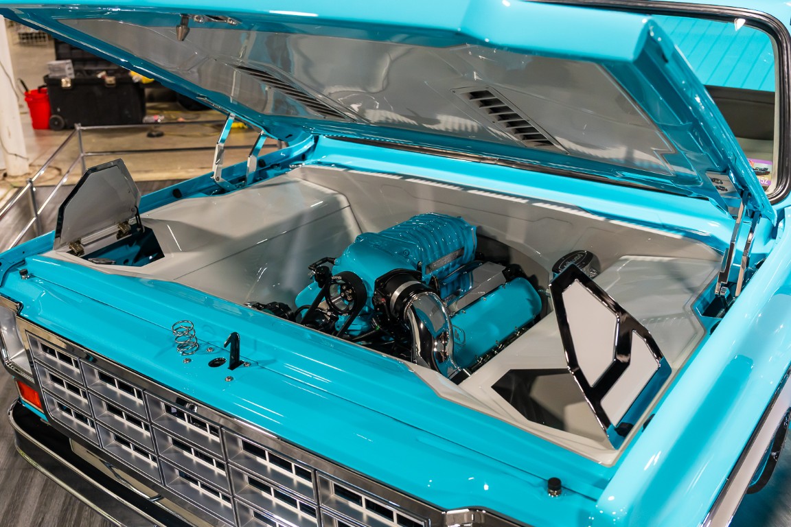 To continue staying warm, there were two more buildings full of heavy hitters. In this building, you could find classic truck builds, restomods, mini-trucks, a lowrider mini-truck with a tilt bed full of audio, a clean VW Beetle, a few exotics, a crazy lowrider complete with an engraved blower in the engine bay and a custom setup in the trunk, and a few more C10s. The building next door had lifted trucks, lowered trucks, some classics (like an El Camino and a Typhoon), and a few more vendors.
