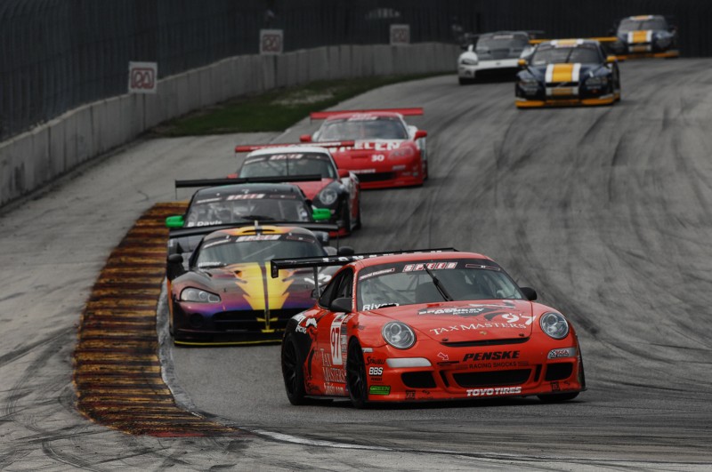 Starting third in the No. 97 Tax Masters/Brass Monkey Racing Porsche 911 GT3, Rivera was the primary beneficiary when the No. 14 Global Motorsports Group Porsche 911 GT3 of polesitter James Sofronas remained motionless on the standing start. Skirting his way around the disabled Porsche, Rivera charged into turn one side-by-side with the No. 13 Woodhouse Performance Dodge Viper of Canadian Kuno Wittmer, who started second.