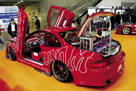 veteran of SEMA, Tokyo Auto Salon is a whole different experience. A quick run around the show floor to get our bearings, and we were off shooting likes of Mugen, Mitsubishi, and more importantly models! Sure, the economy isn’t the greatest right now, and many booths that we were looking forward to checking out were smaller than previous years, but the show was full of fresh new products, hot cars and some beautiful eye candy. Drifting is here to stay, and Tokyo Auto Salon was just further proof. Takahiro Ueno has long been known for drifting his blood-red JZZ30 Soarer, but for 2009, he is changing his game and stepping into a BMW 3-series chassis, which made its debut to the world at the Vertex booth. Ueno’s BMW was so fresh that his crew was still putting stickers on the car at the show! 2008 D1 champion Daigo Saito also debuted a new ride, switching from his Mark II Chaser to the American muscle of a Ford Mustang. Just outside the convention center, D1GP put on several demos throughout the weekend, and fans were treated to some great runs! Team Orange driver and fan favorite Nobushige Kumakubo drifted his Evo X sideways for the first time in public, further exciting the crowd for the 2009 drift season ahead.