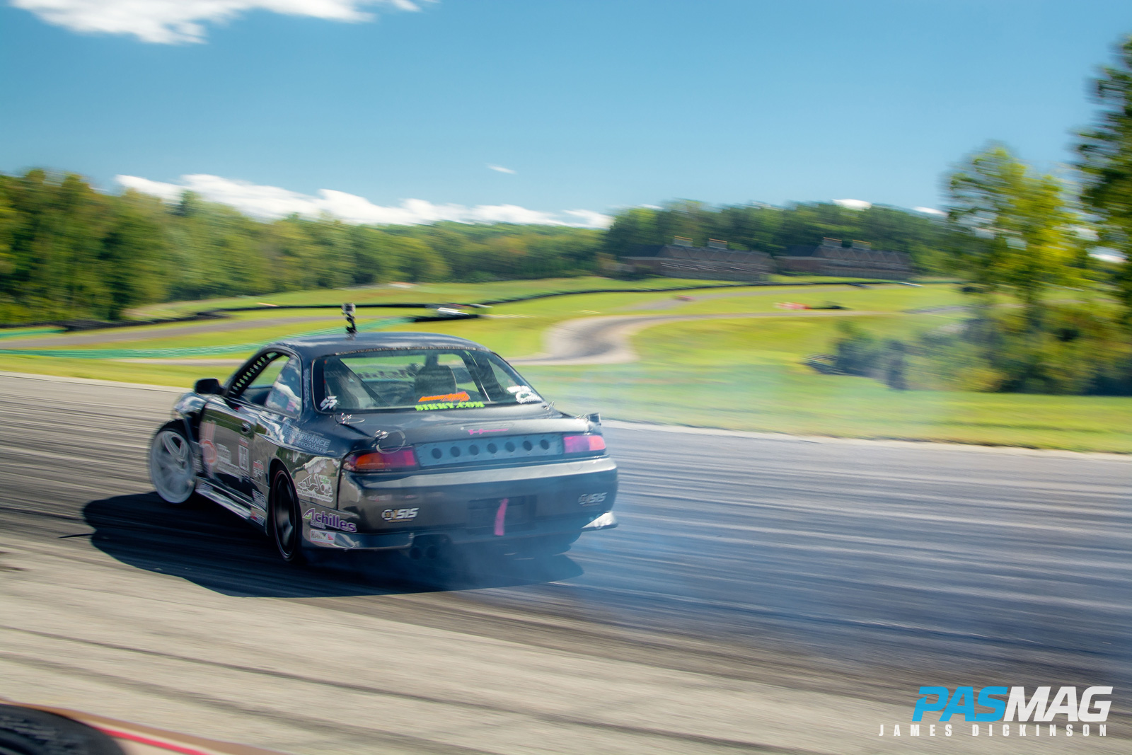Round 4 kicked off the double-header weekend on Saturday with several competitors visiting VIR for their very first time. It didn’t take very long for all the drivers to learn the course and prepare for the competition. Taking the #1 qualifying position was North Carolina native, Jonathan Nerren from nearby Concord in his LS7 powered 1995 Magnuson Superchargers Nissan 240SX. David Bellomo, who looked the most consistent all weekend in his 1JZ powered 1994 Nissan 240SX would wind up missing the podium in 4th place. Nerren would take 3rd place, making this his second USDrift podium finish in a row. Steve Angerman, from Egg Harbor Township in NJ would take 2nd place in his 1JZ powered Hoonigan Nissan 240SX. Determined to push his season points lead that much further out of reach going into Sunday’s final round, Jim Bissey would take 1st place on the podium in his 1JZ powered 1993 J&C Auto Nissan 240SX.