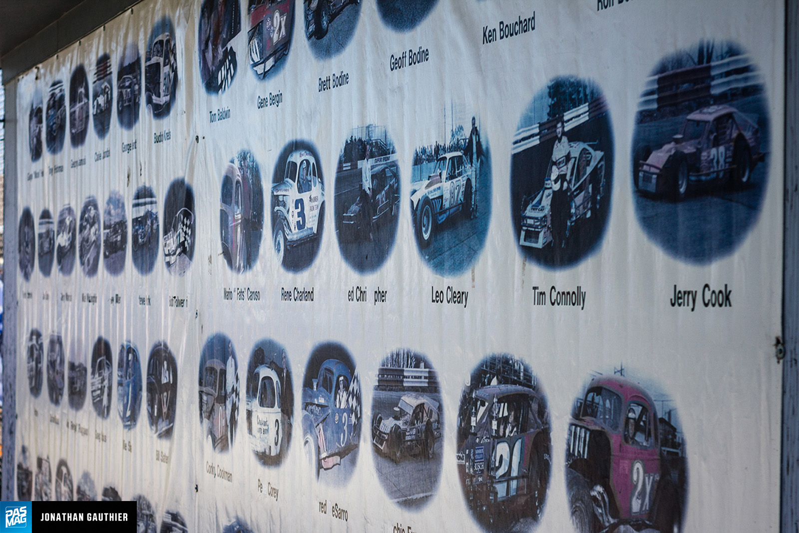 In a less busy area of the venue, on the back of a building stood a mural, a listing of what one might assume is a sort of Hall of Fame, a list of notable drivers at the Stafford Motor Raceway. When looking up the history of the track, one can find that it was actually used as a half-mile horse racing facility up to the end of World War II when it switched to automobile racing. The facility eventually became a NASCAR track in 1959.