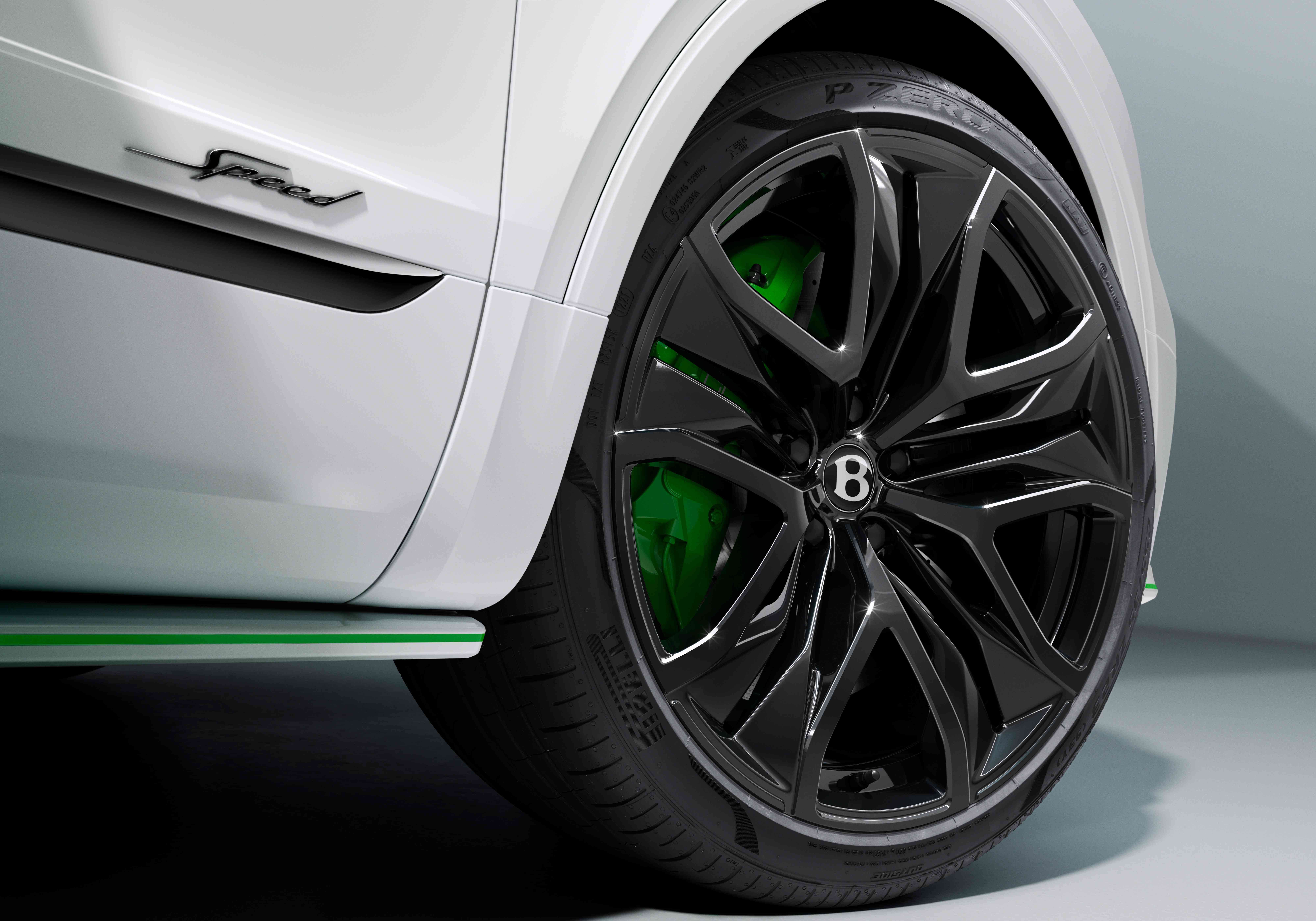 The Bentayga Speed also comes with all-wheel steering, which reduces turning radii, and provides sharper steering response, Bentley says. All-wheel steering enables the rear wheels to turn in the opposite direction of the fronts at low and medium speeds to improve agility and shrink turning radii, the company says.