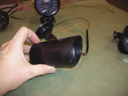 Next step was to secure the plastic gauge housings into place. Super glue was used to attach them to each other as well as the fiberglass base. The gauges were set at a small angle so that they would be in the site of the driver. With the gauge housings mounted to the base they were set back into the vehicle to make sure that everything look cosmetically appealing.