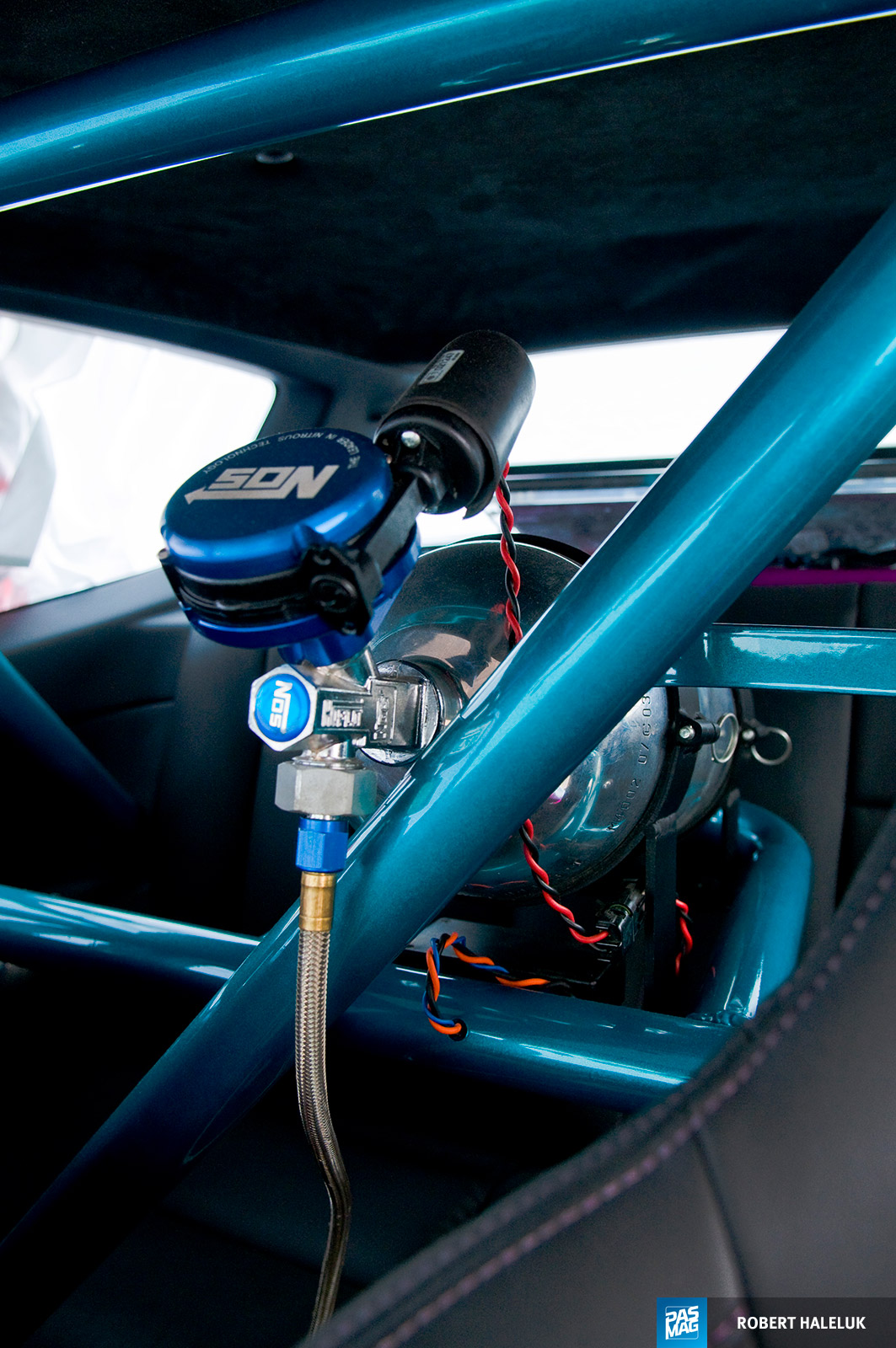 To extract all the potential, Haltech was contacted to supply their E6K standalone engine management system. After hours of exhaustive tuning at the CLM Motorsports dyno in Newark, NJ, all 770 ponies needed to be harnessed. Competition Clutch supplied their beefy twin disc, matched up with a cryo-treated GSR transmission spinning up Driveshaft Shop Chromoly axles.