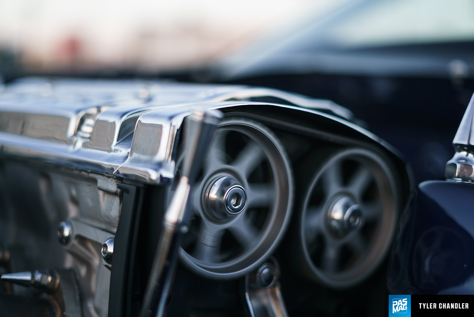 The inspiration for his clean and chrome-decorated engine bay comes from Campos’ father, who he says puts loads of passion into his own builds, especially the engine bays. Today, the engine bay is Campos’ favorite part of the build, and he claims that the engine bay is really the face of the whole car.
