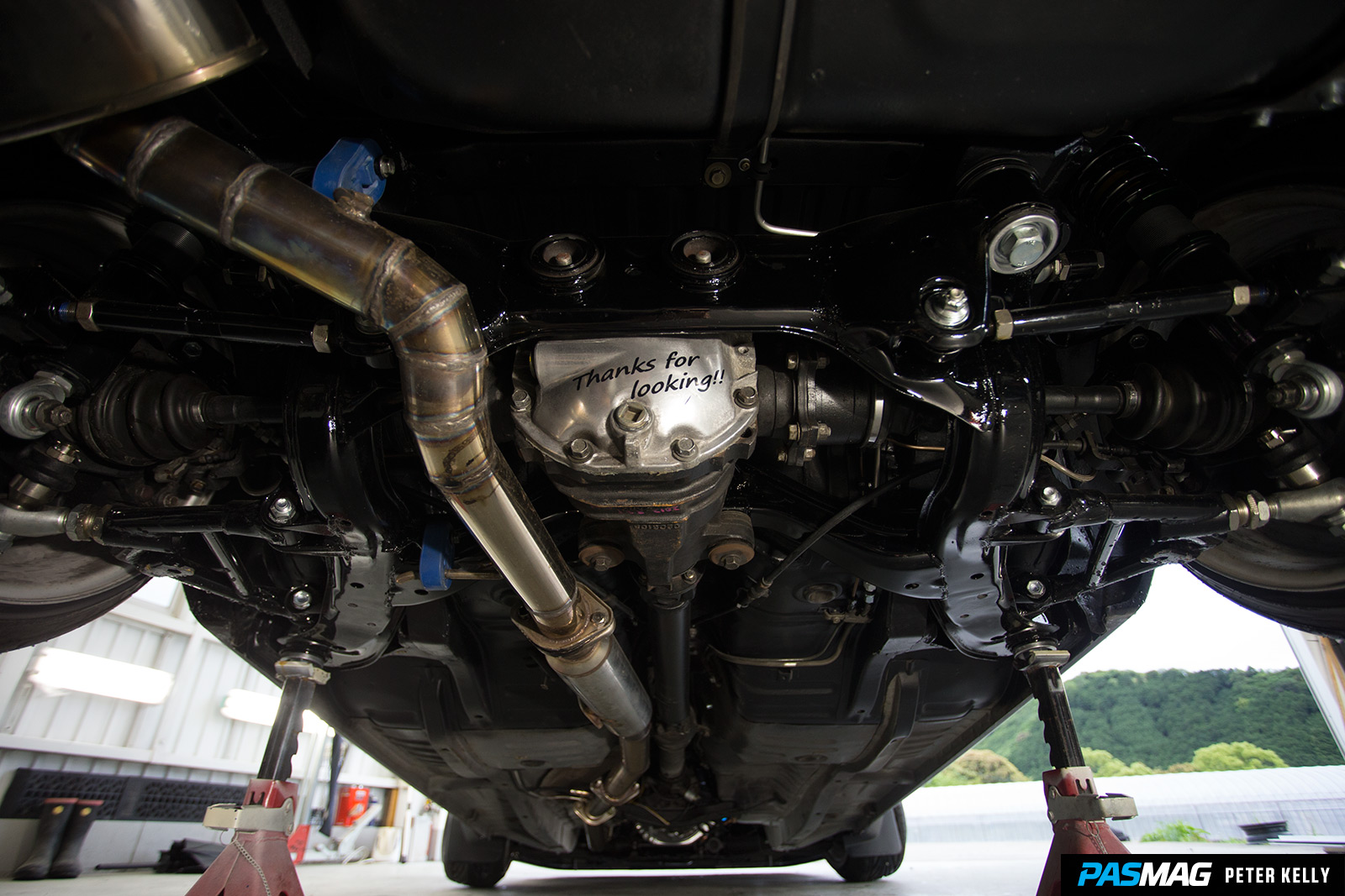 “It was a very difficult job.” Ikeda-san says. “The Silvia is a lot wider and I wanted to run wide, low-offset wheels, so I spent a long time measuring, getting everything right and fabricating parts to make it work. I built it all off the car and then installed it and the suspension now works as it should... But tire wear is probably not going to be so great.”