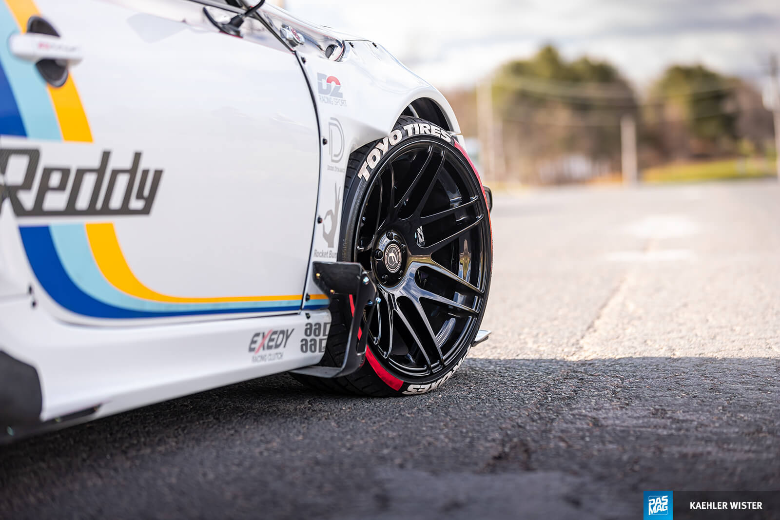 Not even a week later, tragedy struck. A minivan in a mall parking lot backed into the front of his brand new car. Of course, incidents like these can open the door to more opportunities, and Gomez saw it as a perfectly good excuse to seek out some body modifications. Having already added things like Cusco suspension products, a GReddy exhaust system, and window tints, he was ready for something a little more visual. Instead of just replacing the bumper, Gomez took a liking to the V2 Rocket Bunny kit which was released around that time. Determined to install it himself, he spent some time mocking up the kit before sending the pieces off for paint, and cut his own fenders and quarter panels before installing the kit himself.