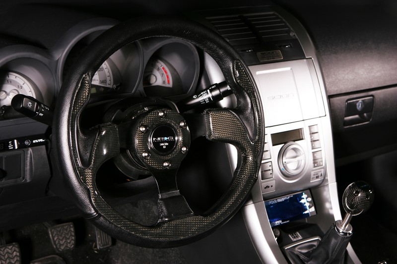 He also added BRIDE recliners with a Takata harness to make sure this Scion get noticed. All of the driver inputs are made with NRG gear including a 320mm carbon fiber and black leather steering wheel, carbon fiber shift knob, as well as shift and e-brake boots.