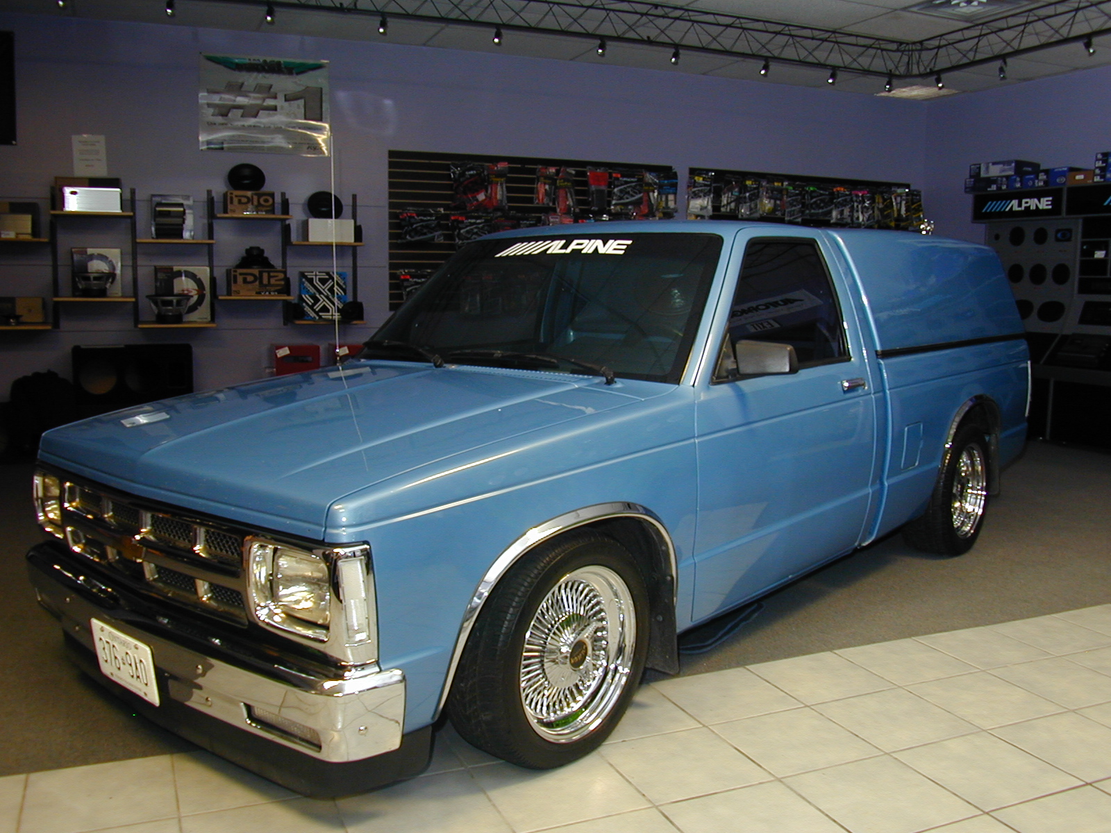 First up, this Chevy S-10 which was clean then, and it's clean now. The wire wheels and paint-matched bed box immediately standout as a timeless look, pairing with the truck's original chrome in a way that would look right at home in a show to this day. The full sized spare sitting among the audio install in the back is the icing on the cake. And check out that original Playstation in the glove box!