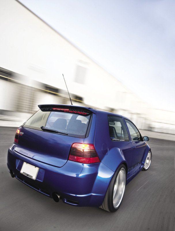 The attention then focused on the footwork that needed to be modified to maintain traction and control of the V-Dub. A set of HRE 590R19x9-inch front HRE 590R custom 19x11-inch rear were added wearing some rubber thought impossible on a Golf. The Continental ContiContacSport 3s measure 255/30ZR19 in front with shocking 315/25ZR19s in the back.