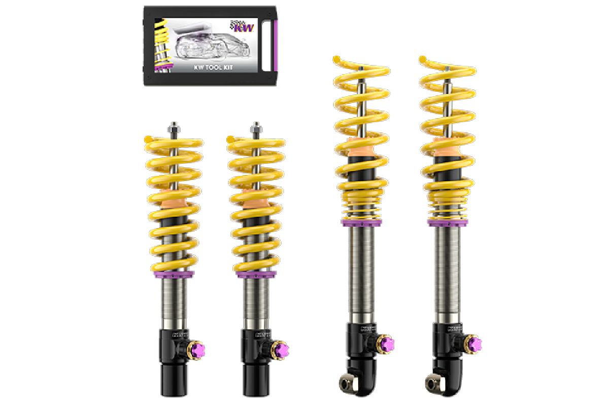 The V4 kit is a three-way adjustable system, giving drivers control over high-speed compression, low-speed compression, and low-speed rebound. This tech is directly inspired by the suspension KW originally developed for the BMW M4 GTS.