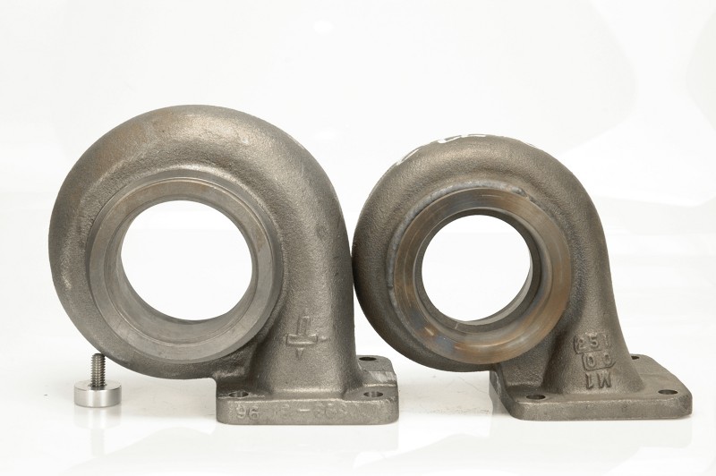 If cost is a factor, you will want to consider your center cartridge options. The CHRA or “Center Housing and Rotating Assembly” would be considered the “heart” of the turbo. There you will find the oil-bathed bearings that support and guide the exhaust and compressor wheel shaft. Non-ball bearing or “journal bearing” turbos are the more economical choice. While they do not often provide the same throttle response or spool time of the ball bearing option, they are less costly to rebuild.