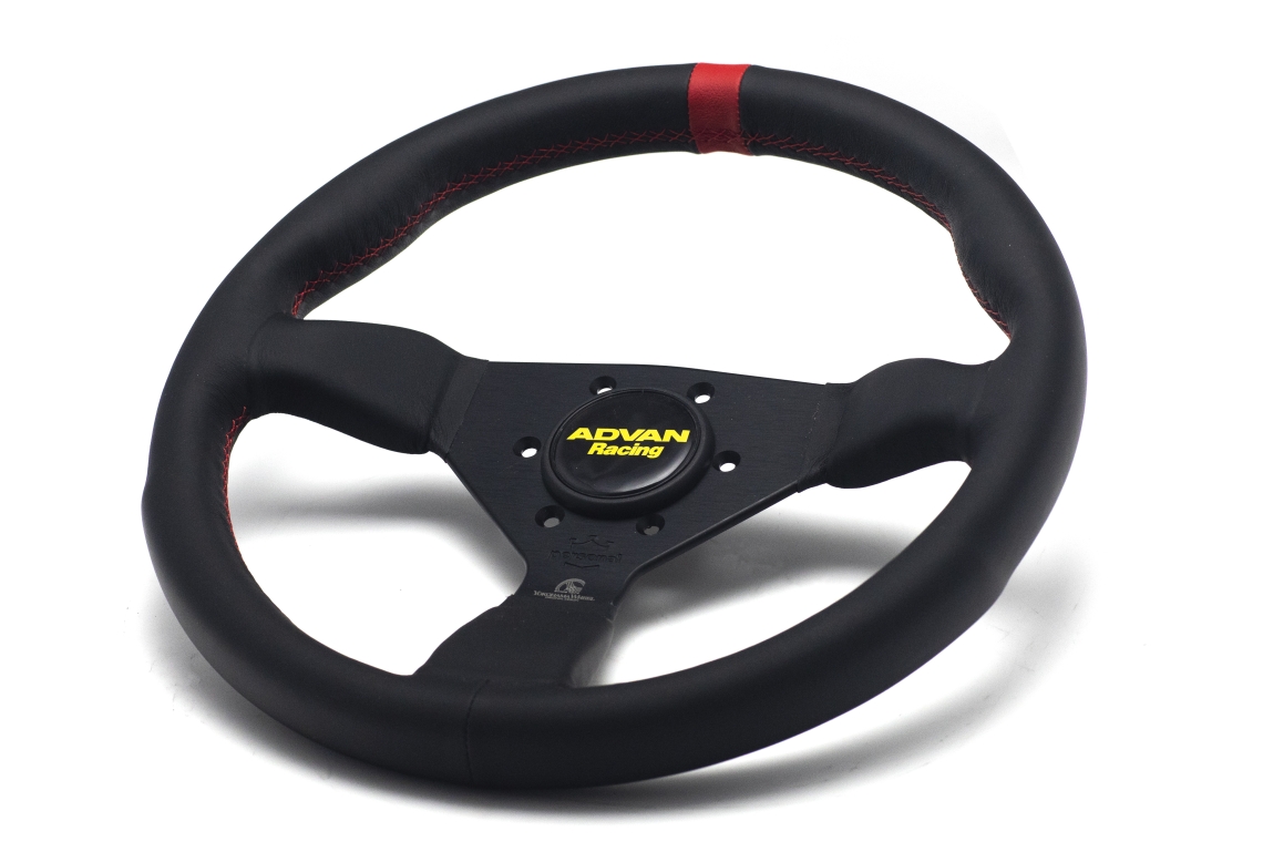 Sport the racing heritage of Yokohama ADVAN in your interior with the Advan Personal Grinta steering wheel. Wrapped in leather with red stitching, and complete with an ADVAN Racing horn button, the racing heritage of the brand is echoed in the styling of this steering wheel. Available in 330mm diameter.
