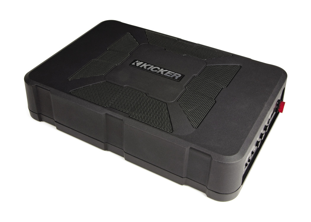 KICKER’s legendary subwoofer technology continues to lead the way for clear-sounding, ground-pounding bass in a vehicle with its first compact powered subwoofer and a CES Innovations award winner for design and engineering. The Hideaway™ Compact Powered Subwoofer delivers surprising bass output from a remarkably small enclosure. At just over three inches high, the Hideaway combines a 150-watt amplifier and an 8-inch subwoofer to add thumping bass to any vehicle from the tightest locations.