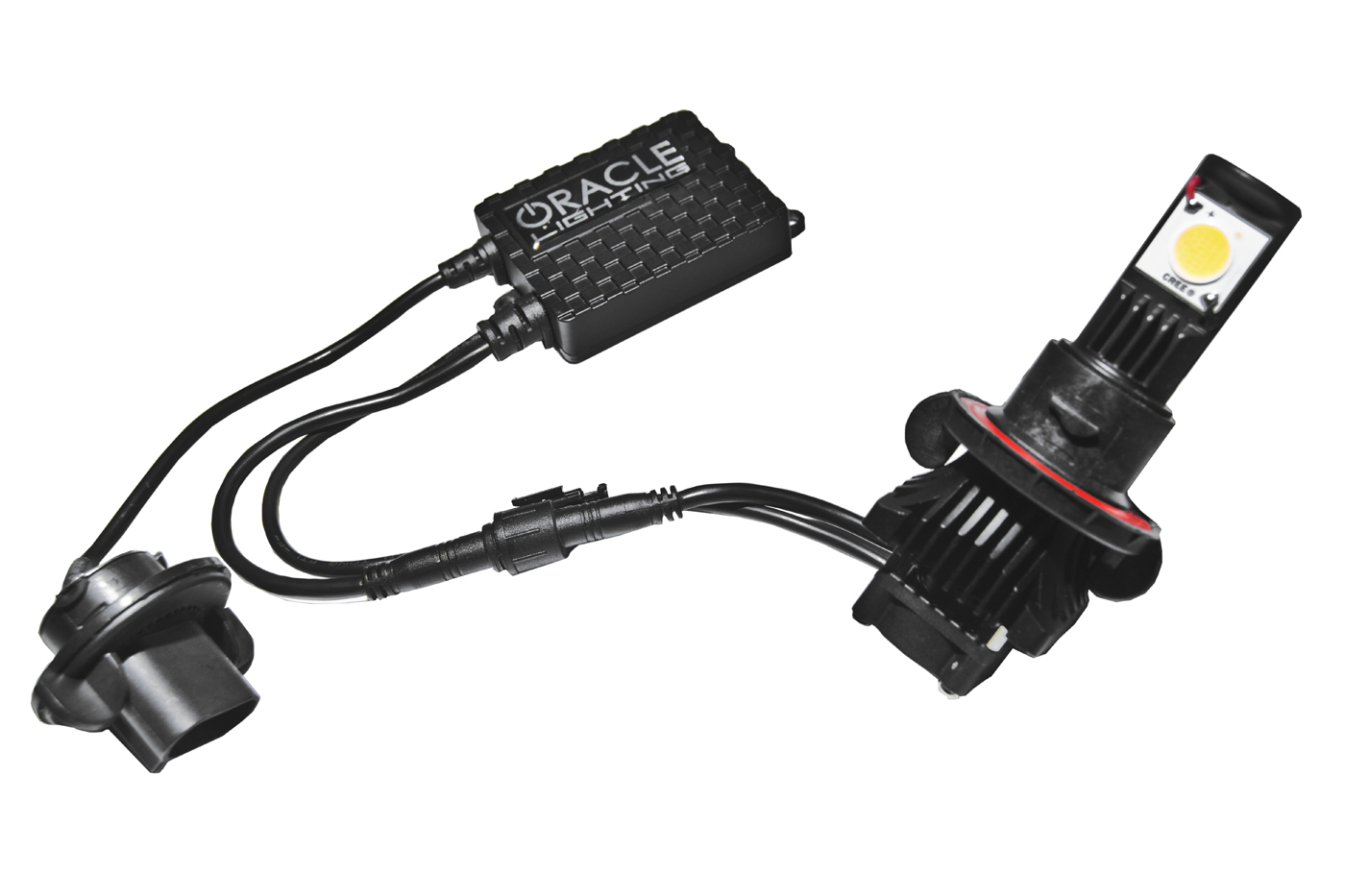 Oracle’s LED headlight bulbs deliver excellent visibility thanks to high-quality Cree LEDs and optimized reflective optics. Simply remove your existing bulbs and replace them with these LED bulbs - plug & play! A built-in fan keeps the LED cool and the fan gets its power from the bulb with no additional wiring. These LEDs only use 28 watts of power through two 14-watt emitters.