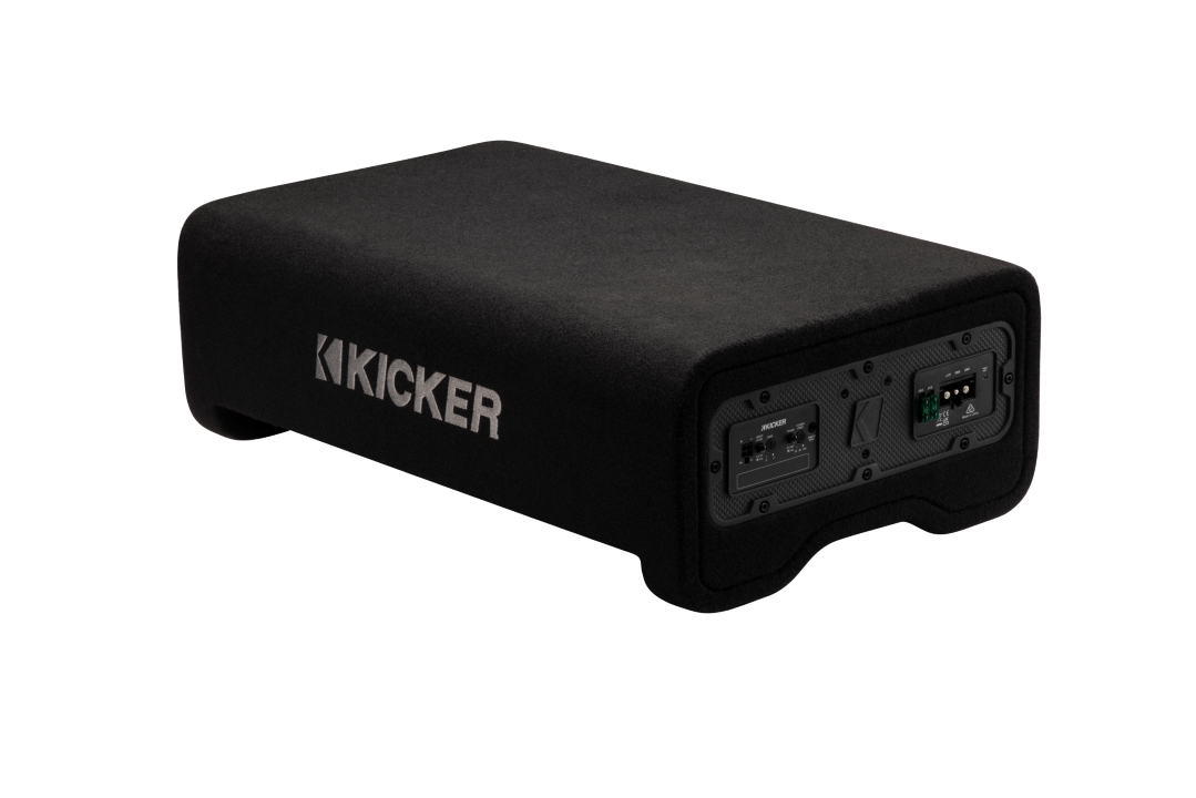 KICKER’s PL7TDF powered enclosures pack serious low-end into a compact, truck- and SUV-friendly design. Built around the ultra-thin Solo-Baric L7T square subwoofer, each unit features a built-in, power-matched amplifier for easy integration with factory systems. Available in 10-inch (500W) and 12-inch (600W) versions, the down-firing enclosure adds durability while maximizing output—delivering hard-hitting bass without sacrificing space.