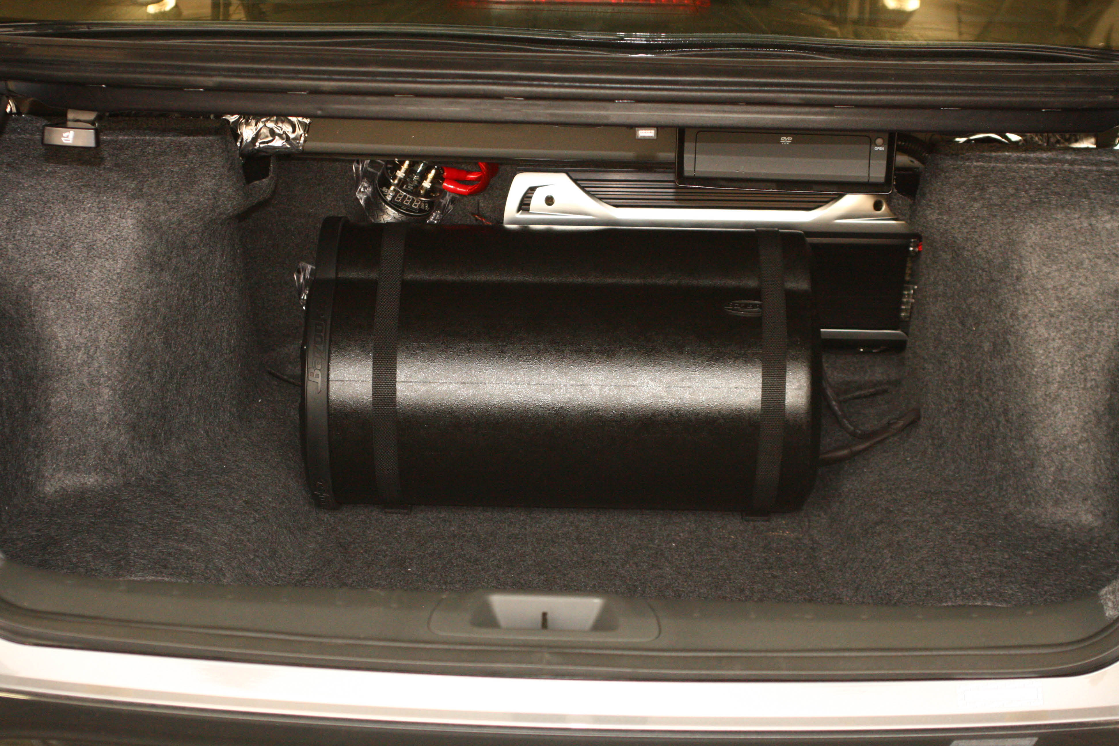 20 – Remove the OEM trunk liner carpet, measure for Basstube side clearance and attach the mounting straps. Secure tube snuggly and test fit back in the trunk, adjust where necessary and plug in BTAH cable.